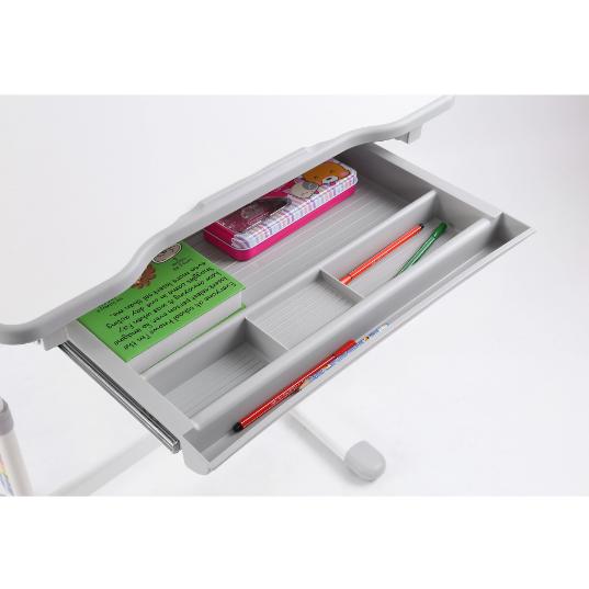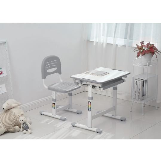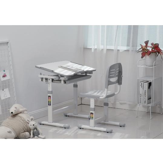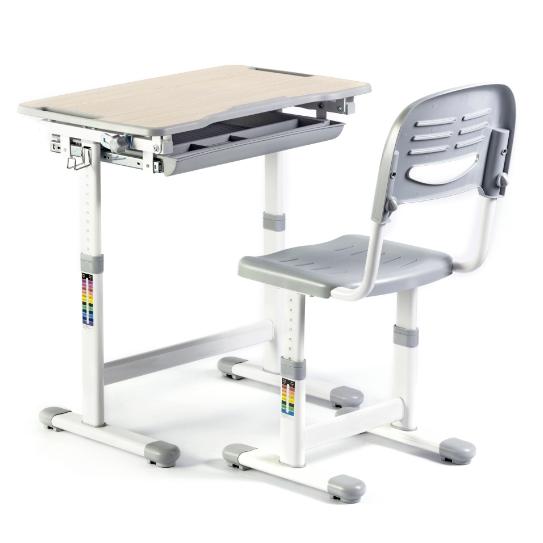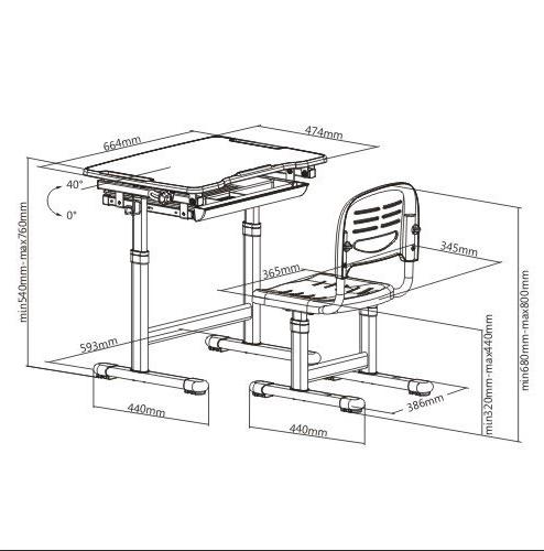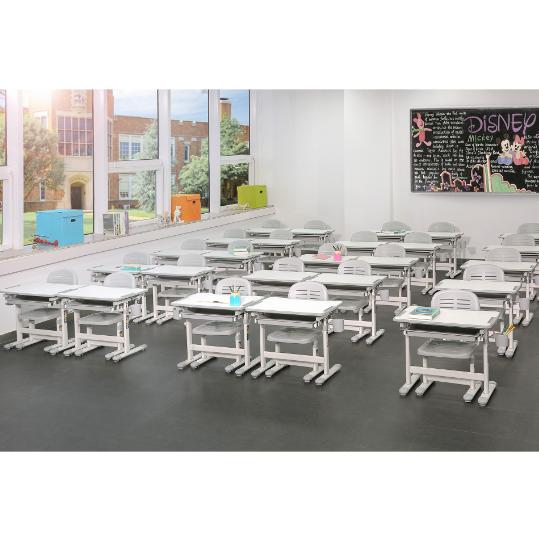 Ергономичният комплект e проектиран, за да осигури удобна учебна среда на всяко дете в процеса на растеж и развитие. Чинът и столът са с регулируема височина за оптимално адаптиране към ръста на детето. Работният плот се накланя до 40 ° правейки го удобен за писане, четене и рисуване.
