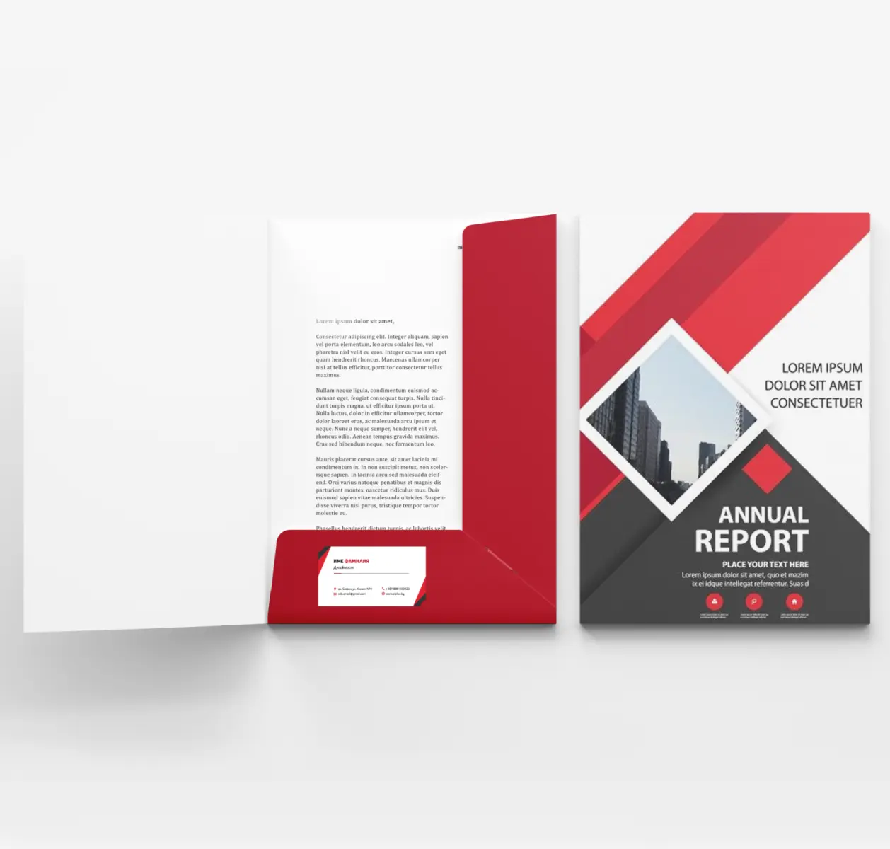 Подарете на документите си професионален вид с персонализирани папки с джоб, изработени по наша щанца и брандирани изцяло по Ваш дизайн. Идеално решение за презентации, оферти, конференции, събития и ежедневна офис употреба. Предлагаме печат по индивидуален проект - Вашето лого, визия и корпоративност, както и формат по стандартна щанца – оптимизиран за A4 документи, с удобен вътрешен джоб и място за визитка.