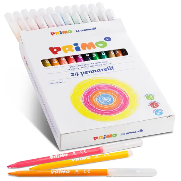 За всички малчугани, които обичат да рисуват, от Primo са направили комплект флумастери, които са лесни за почистване от детските ръце и дрешки, а дебелината на върха им е 2 мм. Цветовете им са наситени, живи и превръщат детските картини в истински шедьоври. Препоръчват се за деца на възраст над 3 години.
