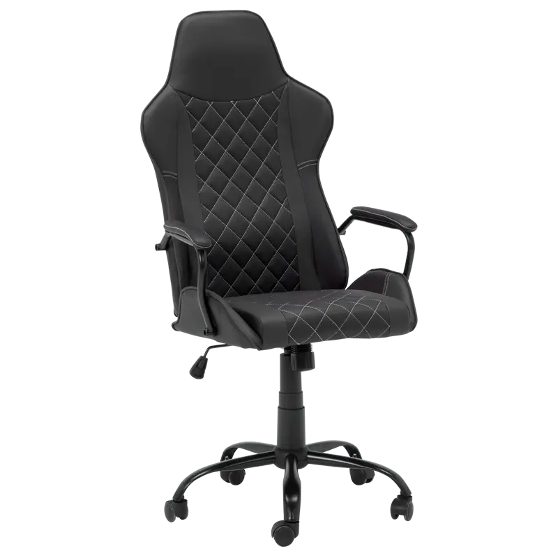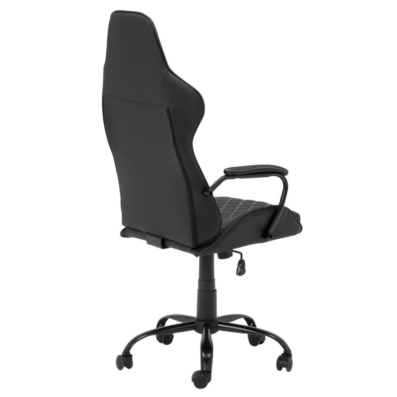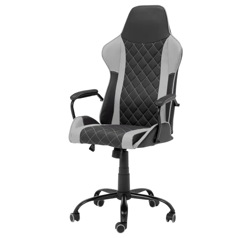 Геймърският стол ДЪСТ е геймърски стол с атрактивна визия и здрава основа от праховобоядисан метал и силиконови колелца. Той е с регулируем люлеещ механизъм и функция за коригиране на височината.