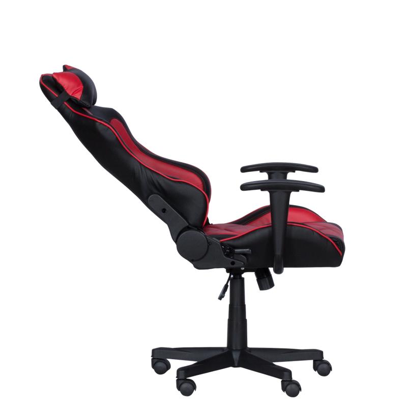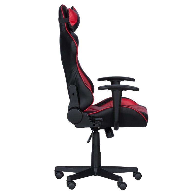 Геймърският стол GAME T е удобен стол, създаден за почитателите на компютърните игри. С него ще създадете идеалната атмосфера за любимото си хоби и ще се радвате на удобство дори след часове прекарани на стола. Той е снабден с механизъм за заключване на облегалката в различни позиции, функция за регулиране на височината, комфортни подлакътници и възглавница за врата, която може да се свали по желание.