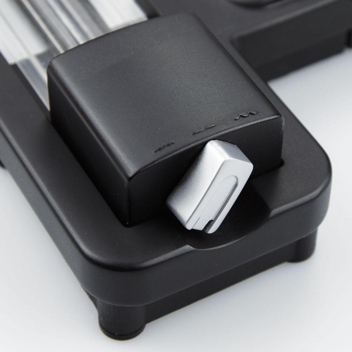 Гилотина и тример в едно. Подходяща за изрязване на снимки, картички, разпечатки или ламинирана хартия. Компактен за съхранение чрез сгъване на двете режещи части.