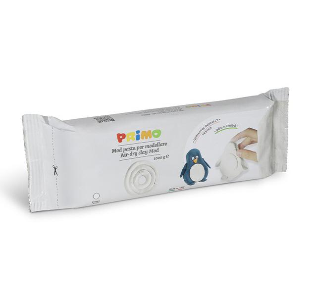Глината за моделиране 1000 гр от серията на Primo за малки деца е готова за употреба, изсъхва на въздух без да изисква печене, за да се втвърди. Произведена изцяло от растителни съставки, без съдържание на глутен. Подходяща е за ръчна изработка на бижута, коледни украшения, чаши, вази и купи. Изсъхва за около ден, след което може да се оцветява с темперни или акрилни бои. Моделира се лесно с леко влажни ръце, тествана за алергични реакции, подходяща за възраст над 3 години.