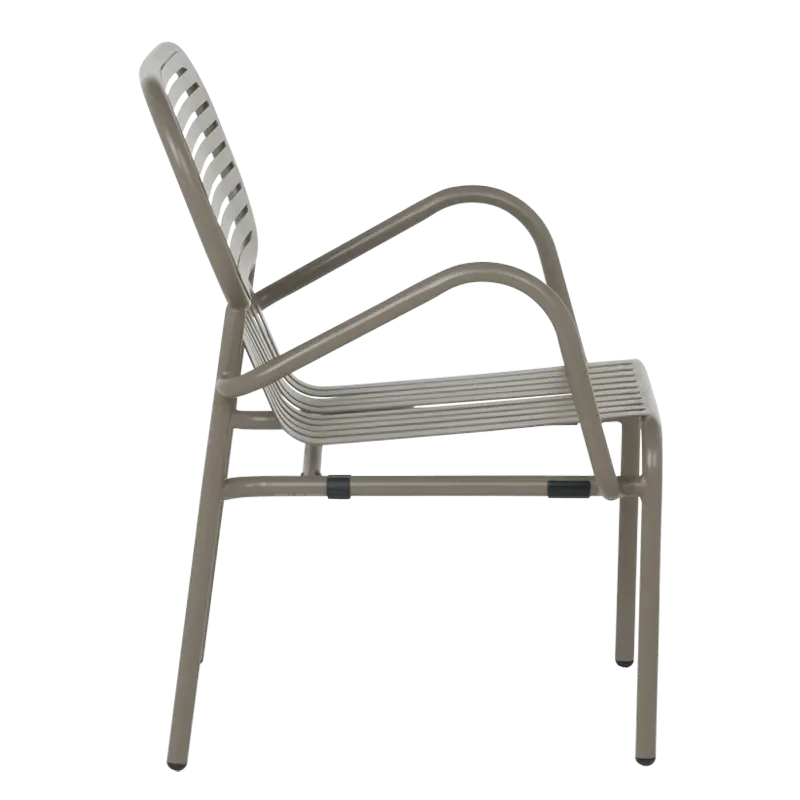 Градински стол ВЕКТА е стилно и удобно предложение за откритите ви пространства. Изработен от метал с антикорозионно покритие, той е устойчив на външни условия и подходящ за градина, тераса или заведение. Ергономичната форма и подлакътниците осигуряват комфорт дори при продължително седене, а изчистеният му дизайн лесно се вписва в различни екстериори.
