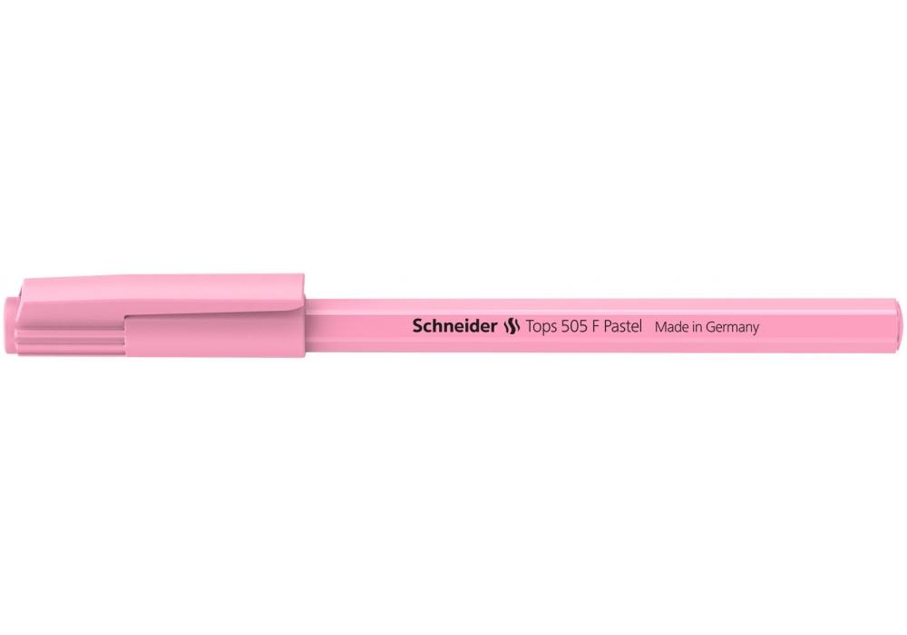 Химикалката Schneider Tops 505 F притежава шестоъгълно цветно тяло. Удобна синьопишеща химикалка с капачка в пастелни цветове.