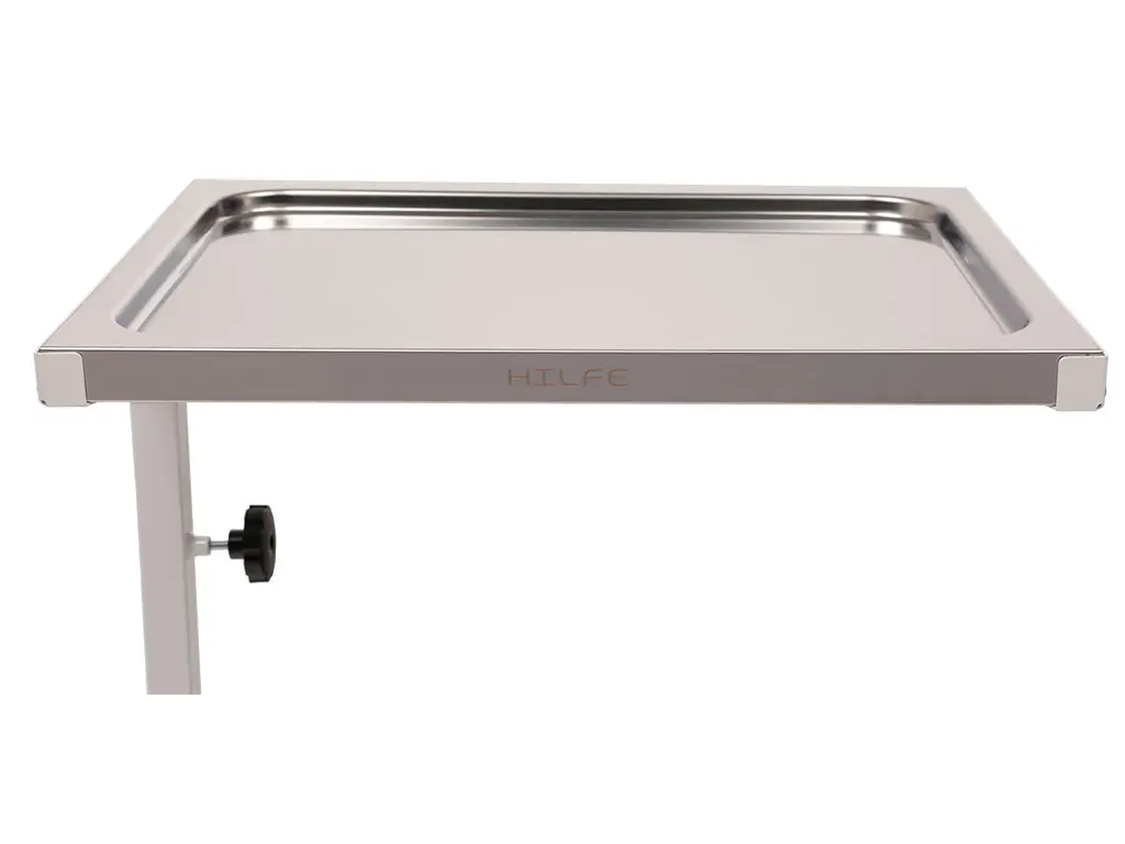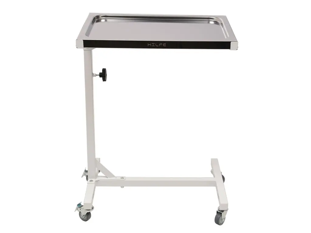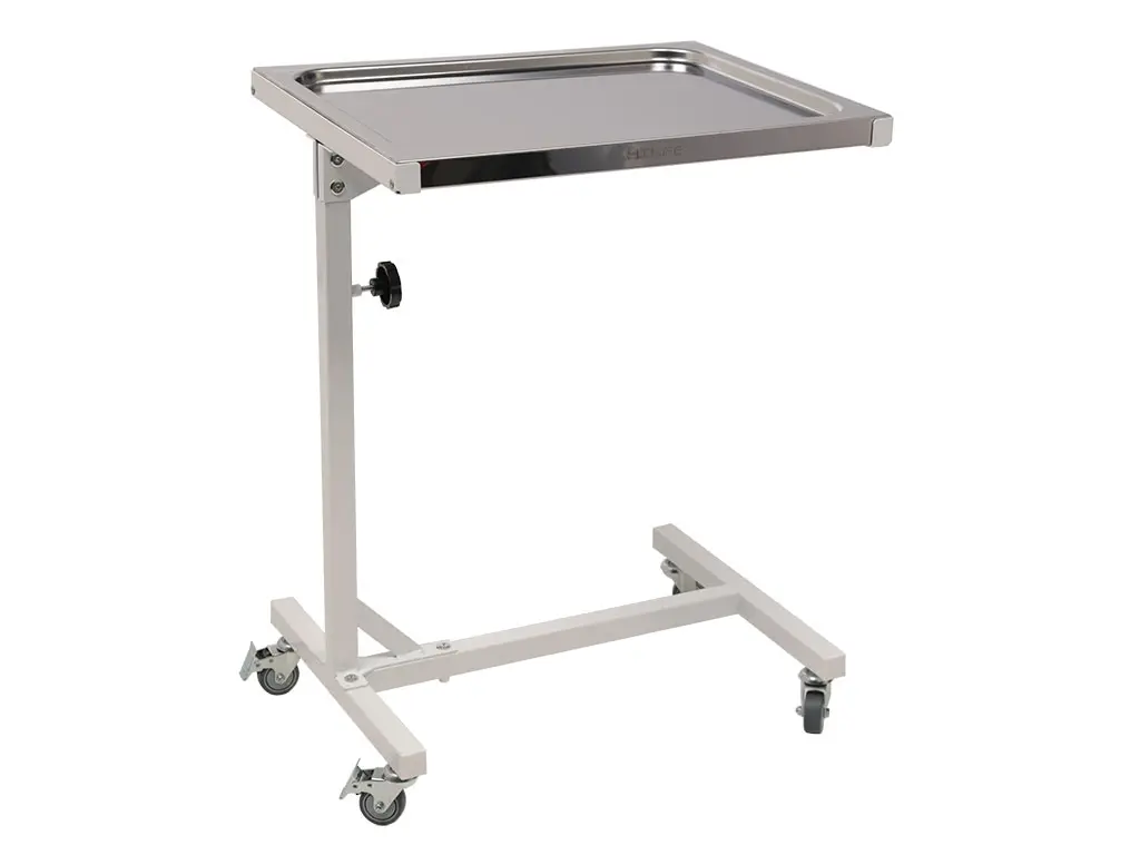 Хирургична масичка PMT CX е предназначена за инструменти, приспособления и друг медицински инвентар, използван при провеждане на лечебни процедури, хирургични операции в клиники, болници, лаборатории и др. Стойката на масата е изработена от квадратен стоманен профил 30х30х1.5 мм. и прахово полимерно покритие.