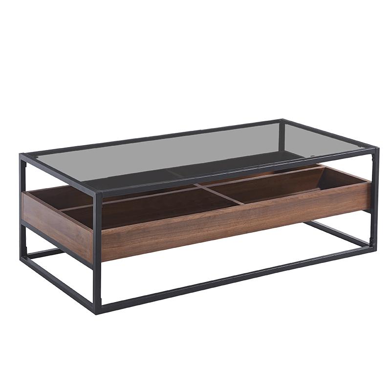 Холна маса КАЯ безспорно ще се превърне в акцент на модерния дом заради своя интересен дизайн. Тя разполага с издръжлив плот от закалено стъкло, който е лесен за почистване и поддръжка. Под него се крие просторно отделение от МДФ. То е разделено на четири секции, които осигуряват достатъчно място за съхранение на списания, дистанционни управления и др. Здравата метална рамка осигурява стабилност и издръжливост.