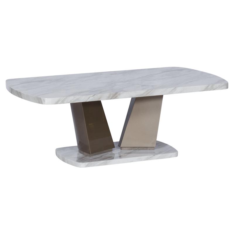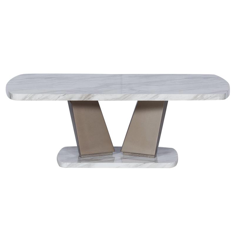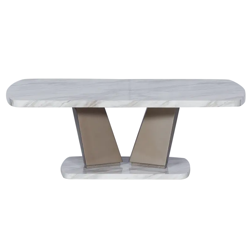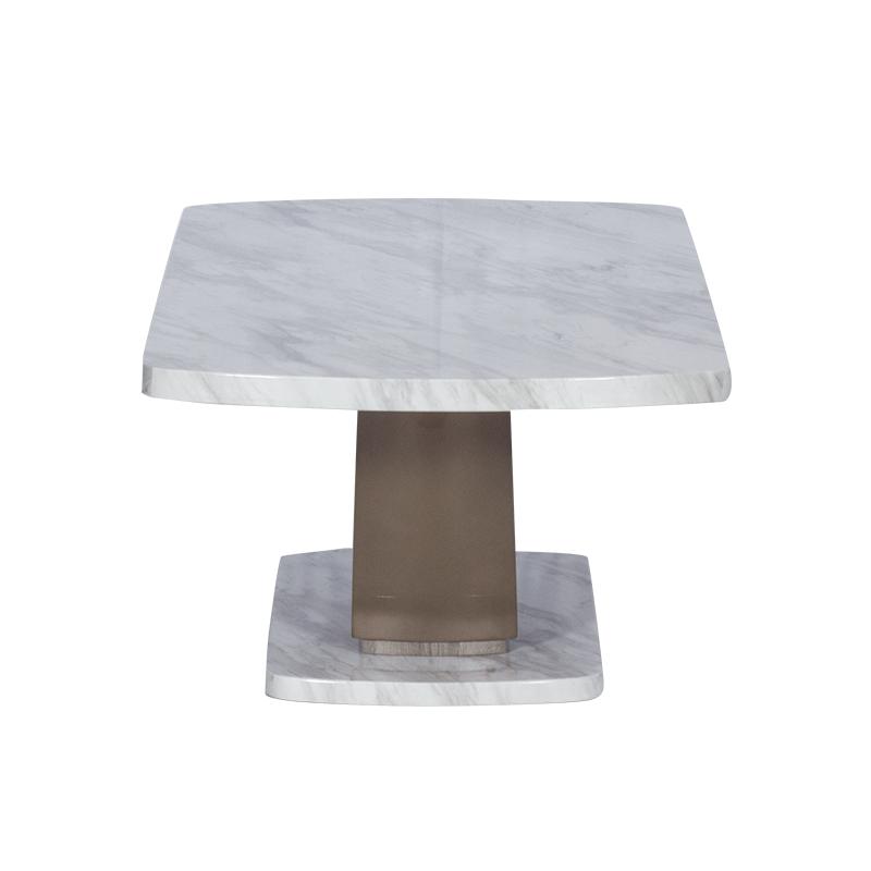 Ако търсите различна и стилна холна маса, НИЯ е създадена по ваш вкус. Освен с изискана визия, моделът се отличава и с висококачествена изработка от МДФ материал. Плотът и част от основата са с мраморна шарка, което създава усещане за класа и лукс.
