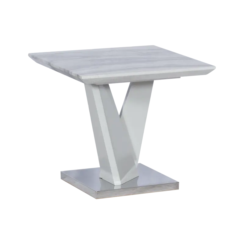Холна маса ВЕЛИЯНА е стилна холна маса с интересен дизайн, който създава усещане за лукс в помещението. Моделът е изработен от висококачествен МДФ материал с дебел плот, чиято горна част наподобява шарките на мрамор, а за долната част на основата е използвана неръждаема стомана.