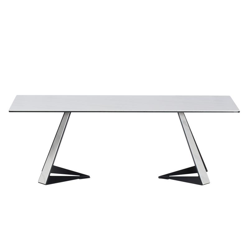 Холната маса ВИХРА съчетава голям правоъгълен плот от керамика и нестандартни крака от метал. Със своята първокласна изработка и стилна визия, тя подхожда чудесно както на масивни и луксозни дивани, така и на модерни, шикозни канапета.