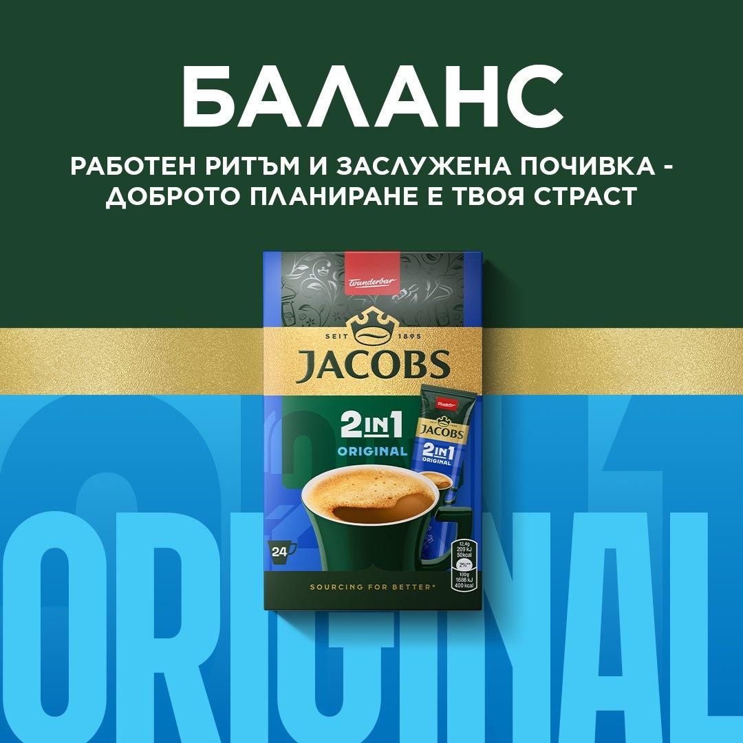 Насладете се на балансирания вкус на кафе Jacobs Original. Идеалното решение за бързо и лесно приготвяне на любимата ви топла напитка, навсякъде и по всяко време.