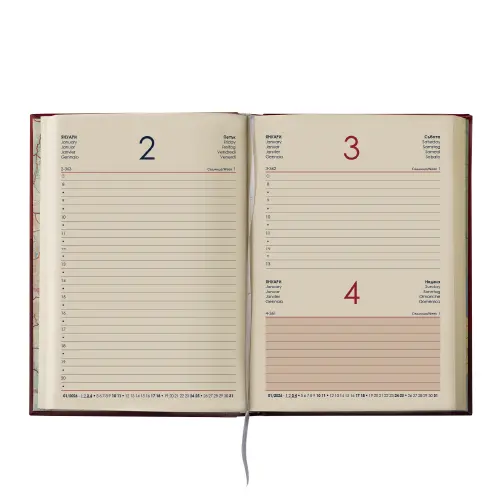 Календар бележникът Календар бележник МАДЕРА е с формат А5 и луксозна корица, облечена с термоактивна кожа. Бележникът е концево шит и лепен за по-голяма здравина, с обшити кантове, които придават завършен и изискан вид. Подходящ за ежедневна употреба и стилно планиране.