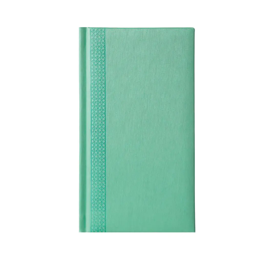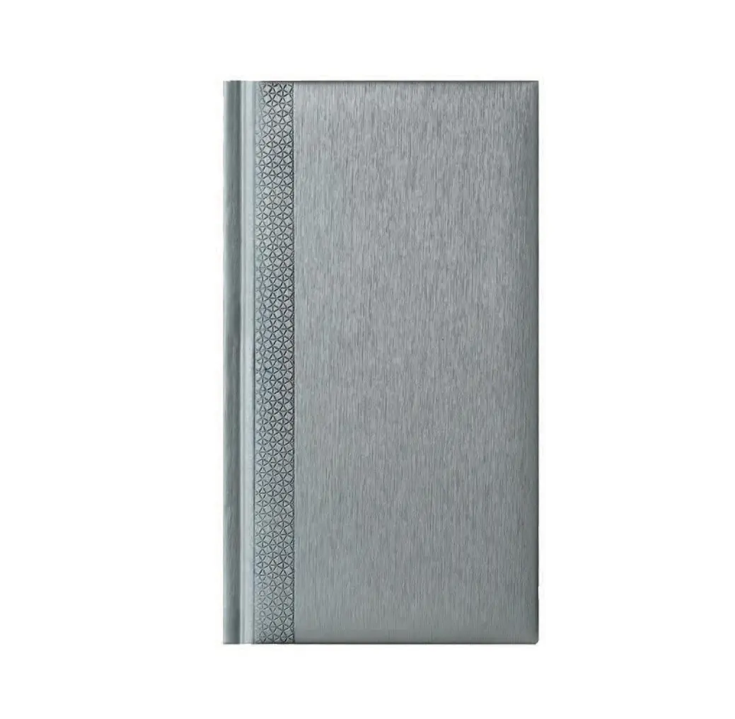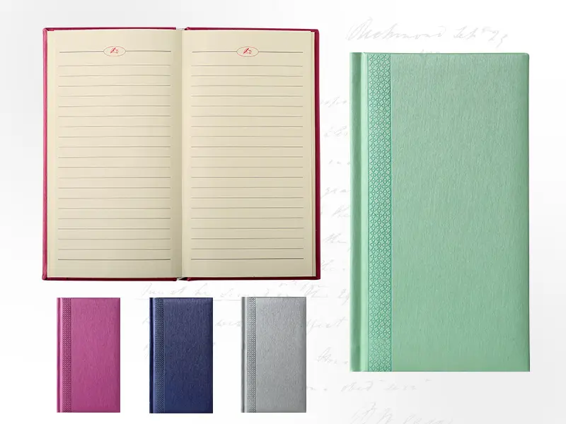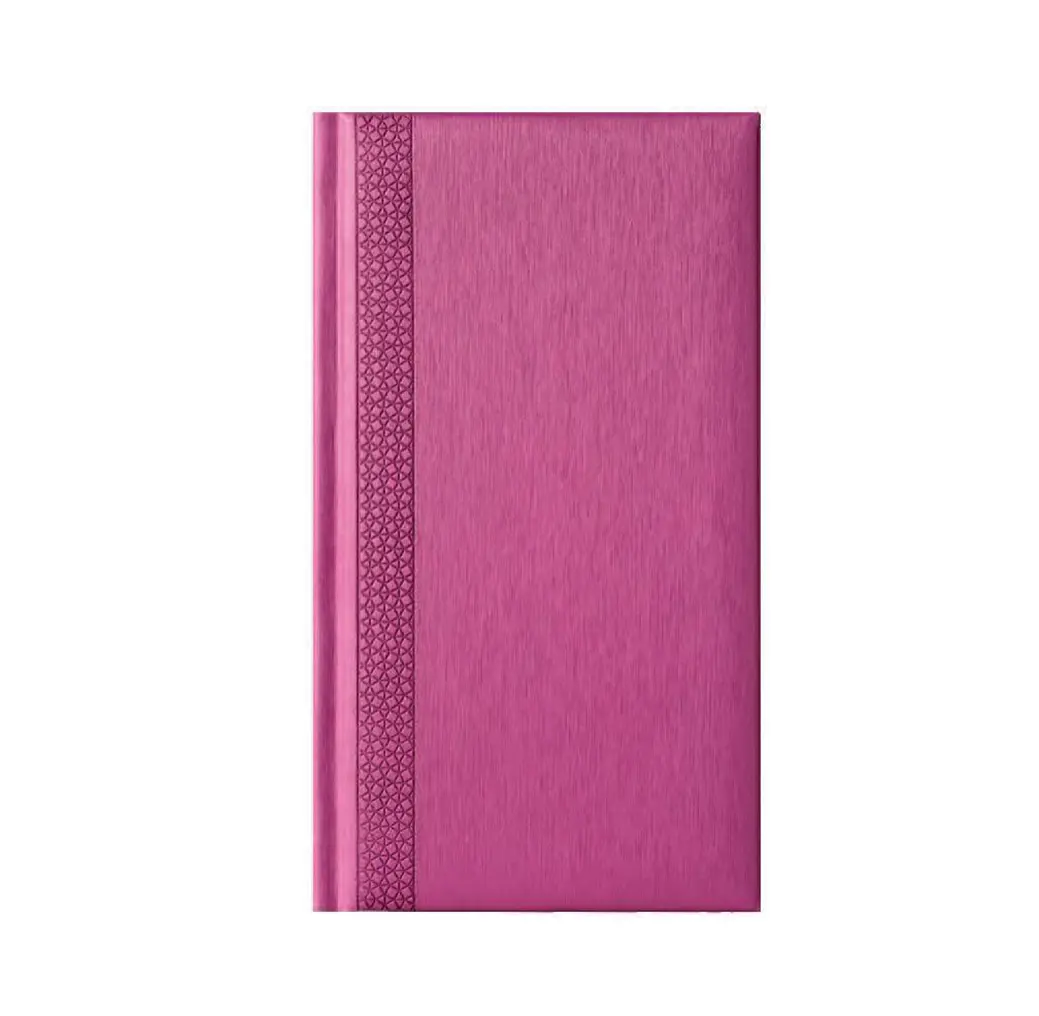 ФИИНЕС е стилен календар-бележник с размер 95х175 мм, съчетаващ компактност и изискан дизайн. Корицата е облечена с луксозна термоактивна кожа и декорирана със сухо преге, което придава елегантен и модерен завършек. Идеален за организиране на графика в движение. преге.
