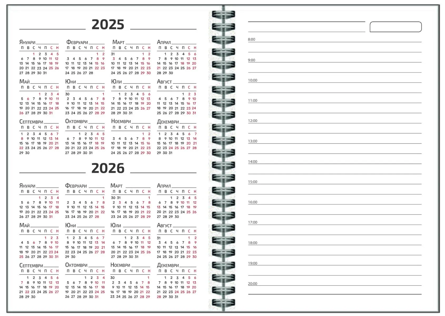 Календар-бележник САТУРН е стилен и практичен избор за ежедневна употреба. С твърда корица от каширан картон и заоблени ъгли, той съчетава елегантност и удобство. Формат А5 и 200 страници от висококачествен бял офсет 80 г/м² осигуряват достатъчно място за бележки, идеи и планове.