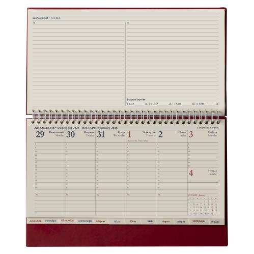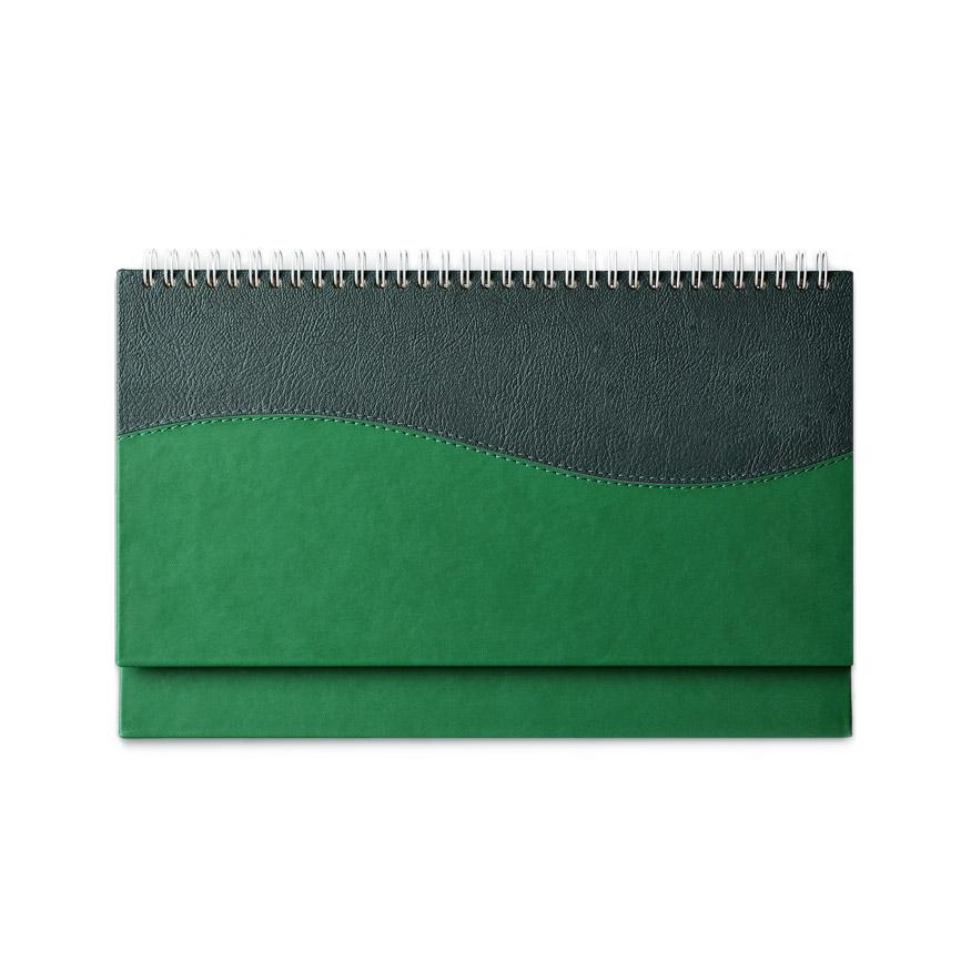 Елегантен и практичен настолен календар с твърда корица, облечена в издръжлива термо кожа. Този календар съчетава стил и функционалност, осигурявайки удобство при планиране и организация на ежедневните задачи. Подходящ за офиса или дома, календарът придава професионален вид на работното място и гарантира дълготрайна употреба благодарение на качествените материали.