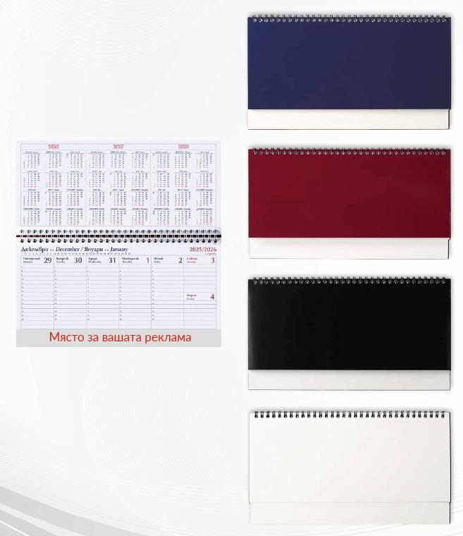 Настолният календар РИЛА е компактен и удобен за поставяне на бюро. С практичен дизайн и ясна подредба на дните, той улеснява ежедневното планиране и организиране на задачите. Идеален за офис или домашна употреба.