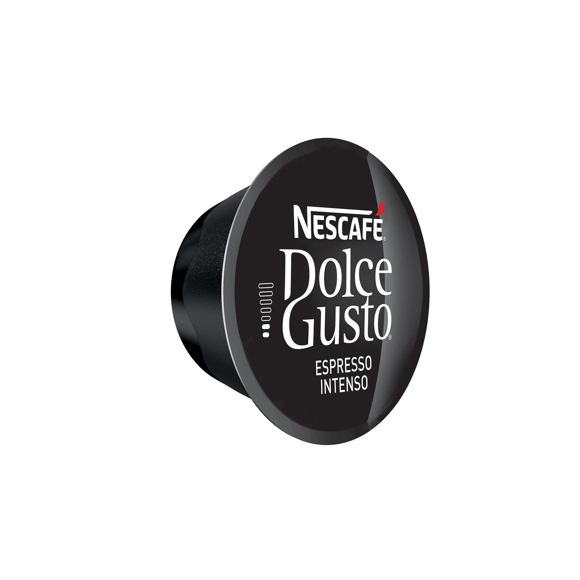 Открий NESCAFÉ Dolce Gusto Espresso Intenso силно късо кафе от средно изпечени кафе зърна, с плодови и леко пикантни нотки, нежно тяло и кадифен каймак. Наслади се на долавящите се нотки на зимни ябълки и червени горски плодове, контрастиращи с финия пикантен привкус на розов пипер.