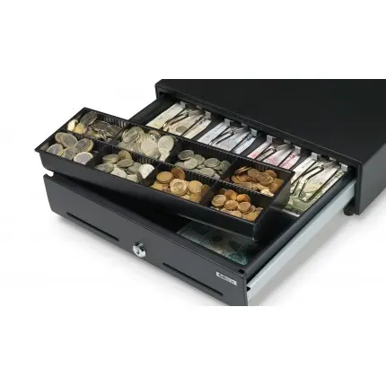 Касовото чекмедже Safescan SD3540 за стандартно натоварване е идеална за използване в обекти за търговия на дребно, училища, клубове, църкви и други организации с нестопанска цел. Благорадение на здравите ролки на сачмения лагер, тази каса-чекмедже е изпитана за поне 1 милион отваряния. Отворете касата-чекмедже, като просто натиснете предния панел. Идеално пригодена за левове, с 4 пригодими отделения за банкноти и подвижна и пригодима поставка с раздели за 8 различни размера на монети. Включва разделяща касета за съхраняване на големи ценни книжа и важни документи далеч от любопитни погледи.