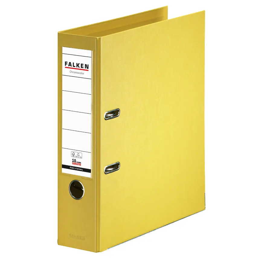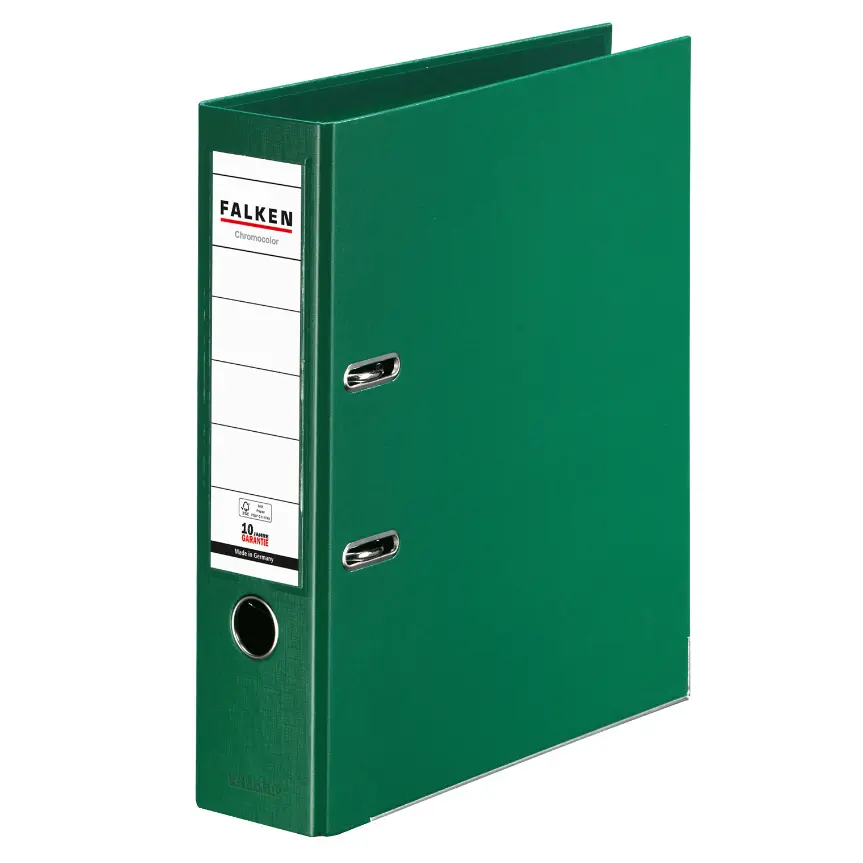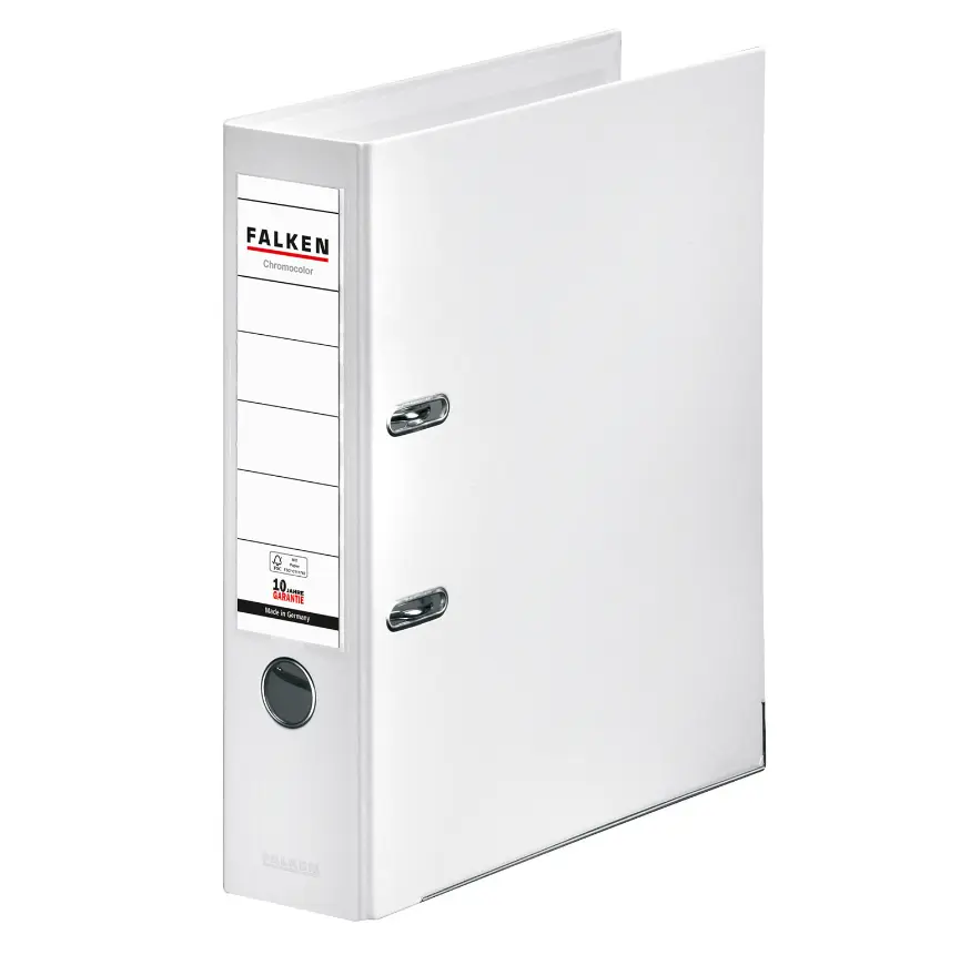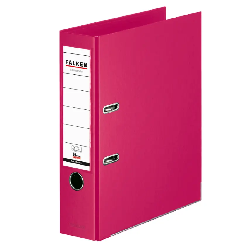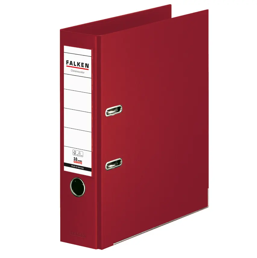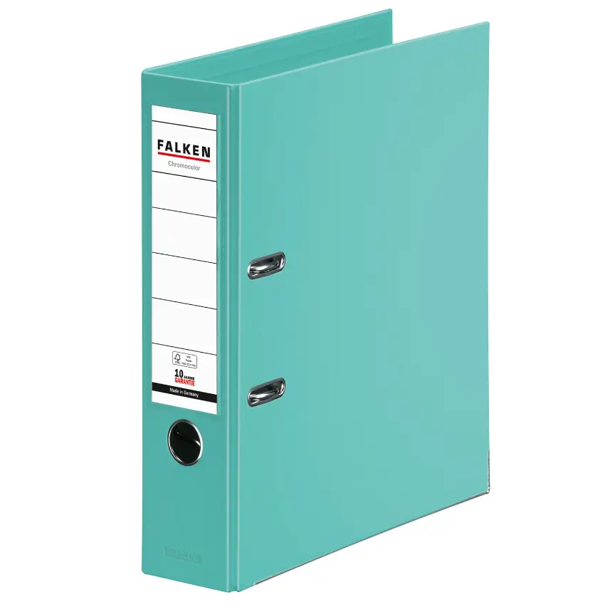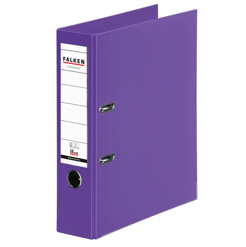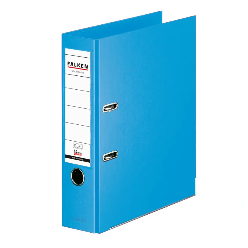 Класьорът 8 см Falken Chromocolor притежава висока износоустойчивост, с метален кант, като също така не наранява мебелите. Изработен от картонени корици с PP (полипропилен) покритие от вътрешната и външната страна и разполага със специален сменяем етикет и отвор за захващане за по-лесно и бързо подреждане на документите Ви.