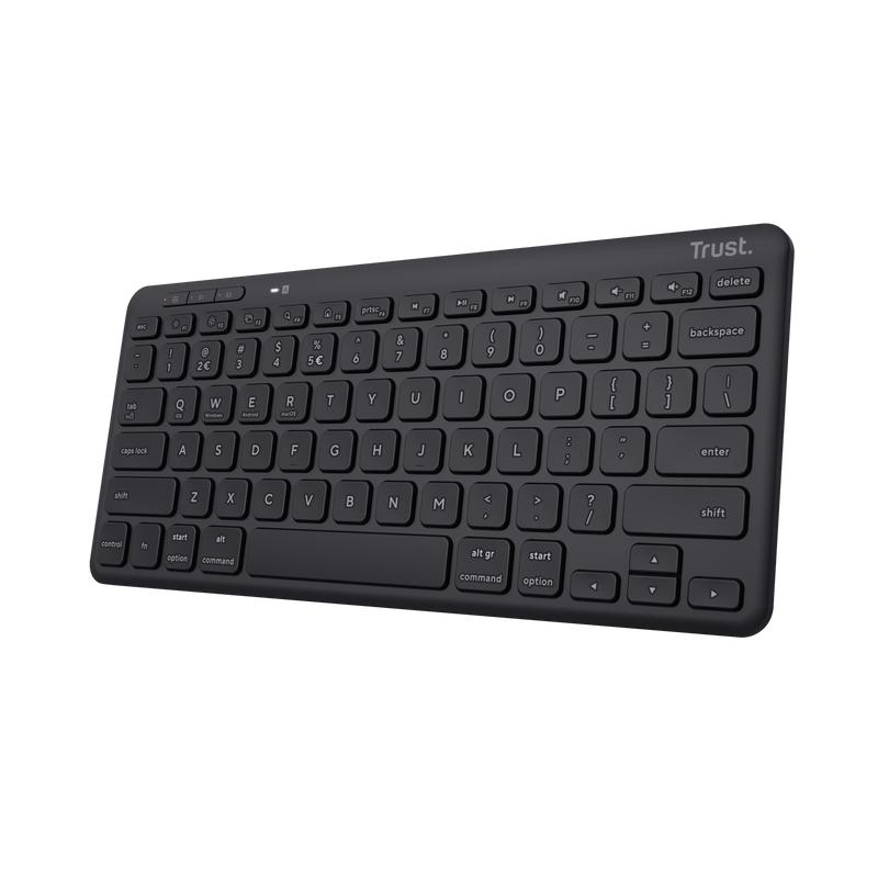Trust Lyra е невероятна безжична клавиатура, която има QWERTY подредба и работи чрез бърза и лесна безжична 2.4 GHz и Bluetooth връзка. Тя има екологичен дизайн, тъй като е изработена с 85 % рециклирана пластмаса. Клавиатурата поддържа множество операционни системи: (Windows, iOS, iPadOS, MacOS, Android, Chrome OS) и може да бъде свързана с 3 устройства едноименно чрез просто натискане на специални бутони. Trust Lyra има вградена презареждаща се батерия, която има цели 6 месеца живот. Освен това може да продължавате да използвате клавиатурата си, докато я зареждате, за да останете продуктивни. Клавиатурата има гумени крачета с 3 степени на регулиране на височината за по-голям комфорт и 12 мултимедийни Fn клавиша.