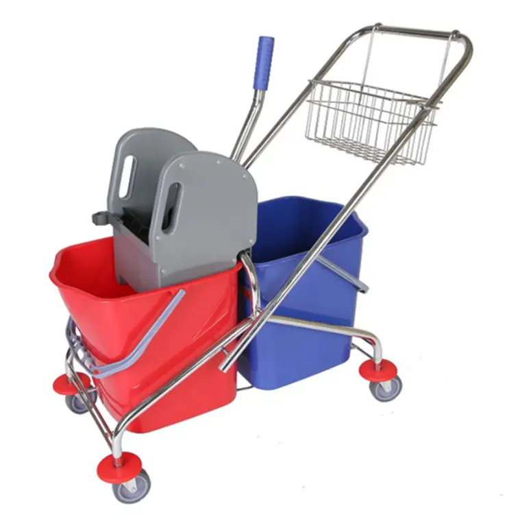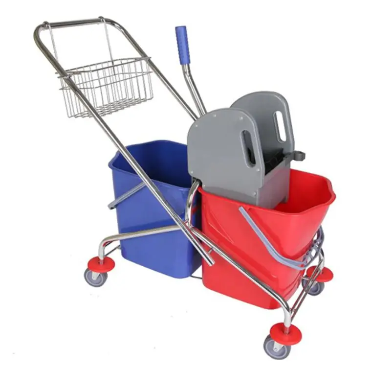 Количка за почистване с алуминиева рамка и две кофи с общ обем от 46 литра (по 23 литра всяка ). Разполага с преса за изстискване и четири колела, за лесно и удобно местене. Двете кофи служат за разделяне на чиста и мръсна вода. Произведени са по технология за инжекционно формоване на пластмасата, което осигурява допълнителна здравина и издръжливост на PP суровината, която е използвана.