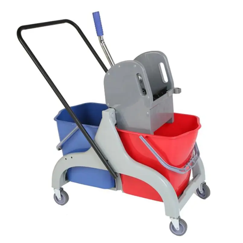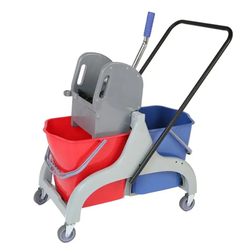 Количка за почистване с PVC рамка, която разполага с две кофи с общ обем от 46 литра (по 23 литра всяка), преса за изстискване и четири колела, за лесно и удобно местене. Двете кофи служат за разделяне на чиста и мръсна вода. Всички пластмасови елементи са произведени по технология за инжекционно формоване на пластмасата, което осигурява допълнителна здравина и издръжливост на PP суровината, която е използвана.