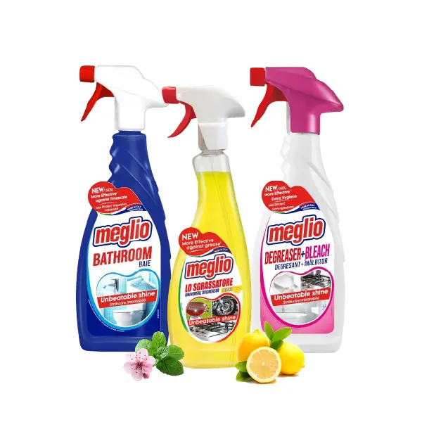 Комплект Хигиена Meglio е мощно решение за ефективно почистване в дома или офиса. Включва три специализирани продукта: обезмаслител, обезмаслител мус с белина и препарат за баня, които се справят дори с упорити замърсявания и мазнини. Подходящ за всекидневна употреба, комплектът осигурява дълготрайна чистота, свежест и отлично ниво на хигиена във всяко помещение.