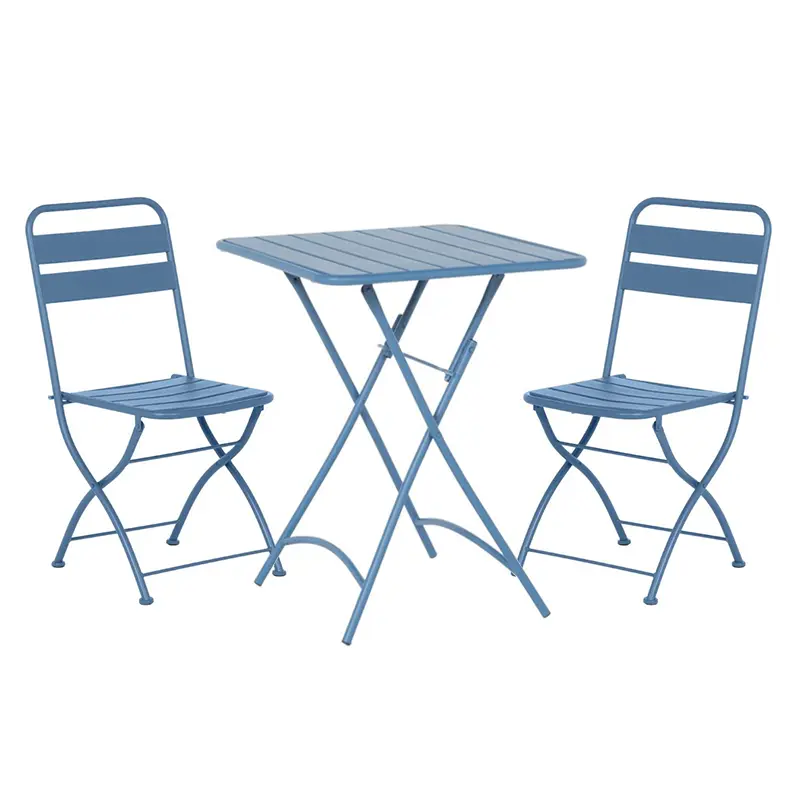 Градински комплект РИО включва маса и два стола, изработени от устойчиви на атмосферни условия материали. Масата има здрава метална конструкция, столовете са снабдени с метални ламели на седалката и облегалката, които осигуряват добра вентилация и комфорт дори и при продължителна употреба на открито. Сгъваемият механизъм на столовете и масата позволява лесно прибиране и пестене на пространство, когато не се използва. Комплектът предлага комфорт и елегантен дизайн за приятни моменти на открито.