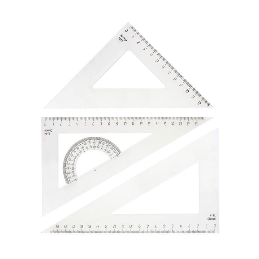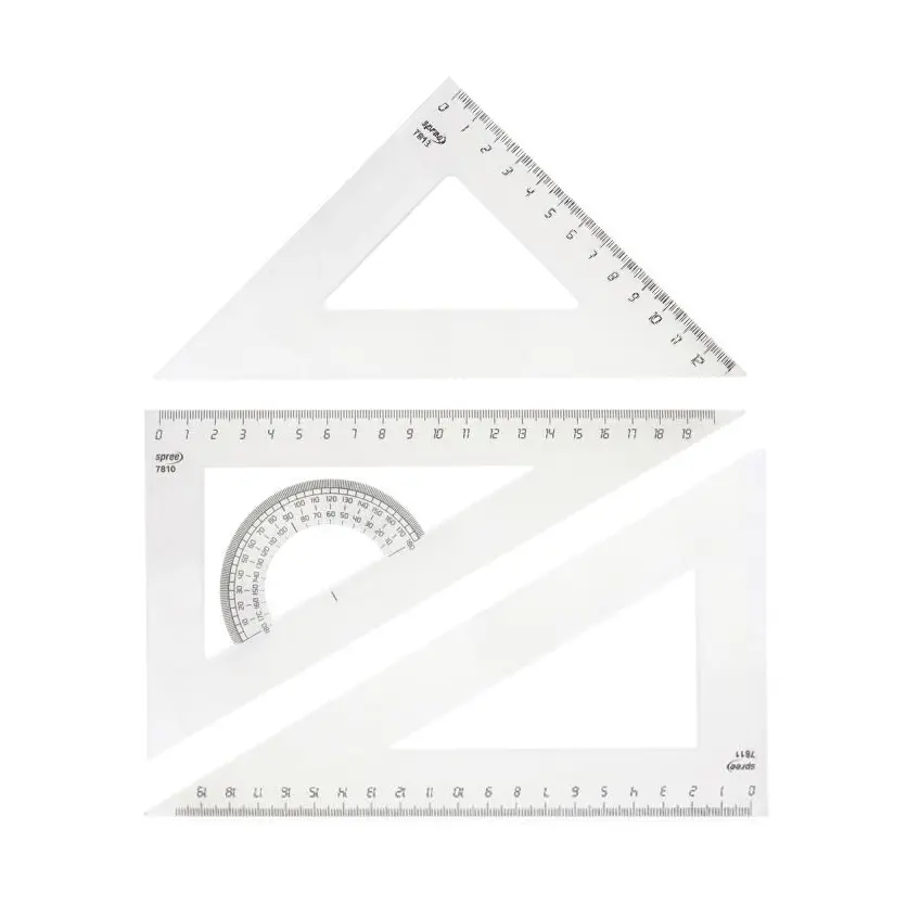 Комплект Spree за чертаене включва три прецизни триъгълника. Изработени от прозрачен и устойчив материал, триъгълниците са подходящи за техническо чертане, училище, архитектура и дизайн. Идеални за точни ъгли, измервания и работа върху графични проекти. Подходящи за ученици, инженери и художници.