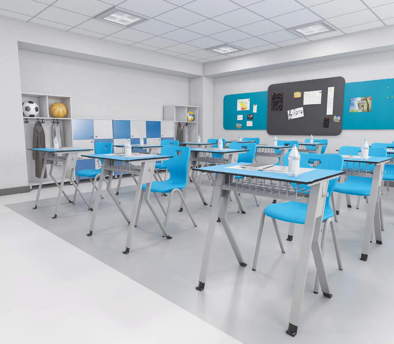 • Метална фиксирана кошница под плота за съхранение на учебни пособия