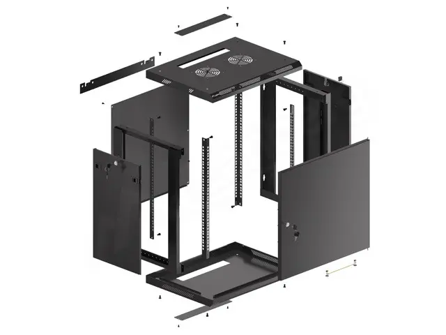 | Включени аксесоари | M6 screws, Front lock, Side locks, Rear lock, Grounding cable, Wheels with brake, Legs, Ventilation panel (4 fan's), Thermostat, Vertical cable management panel x2 |