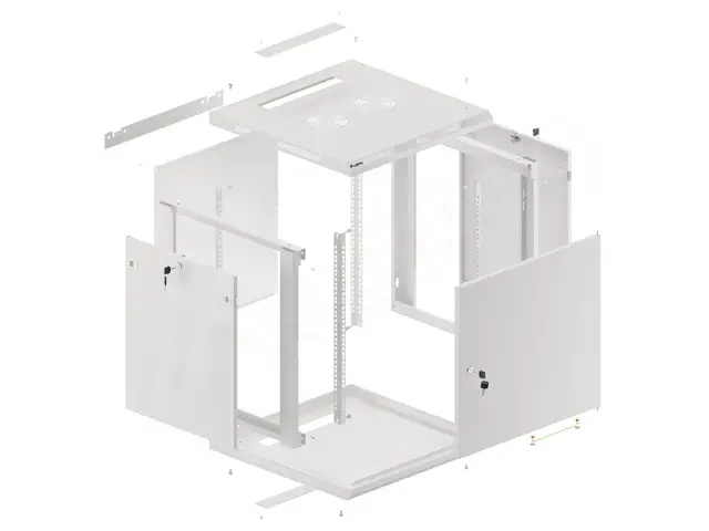 | Включени аксесоари | Accessory bag, earth kit (pins, grounding cable, nuts and mounting washers), front door lock, two side panels with locks, 12 cage nuts M6 |