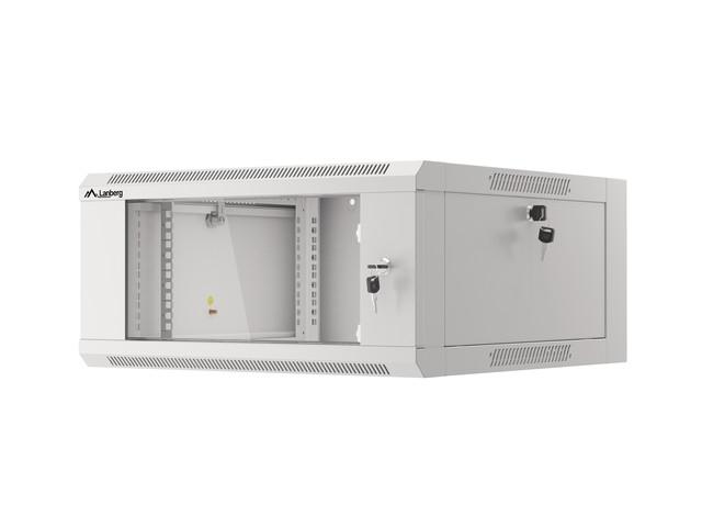 Комуникационен шкаф Lanberg rack cabinet 19' wall-mounted 4U 600 fast assembly (flat pack) grey