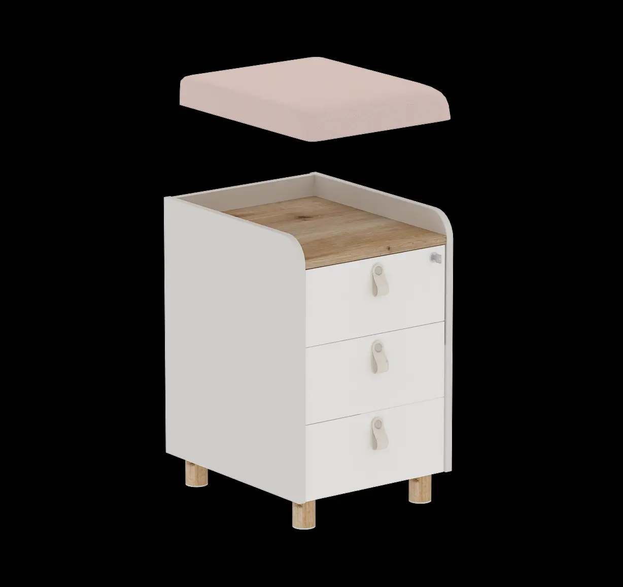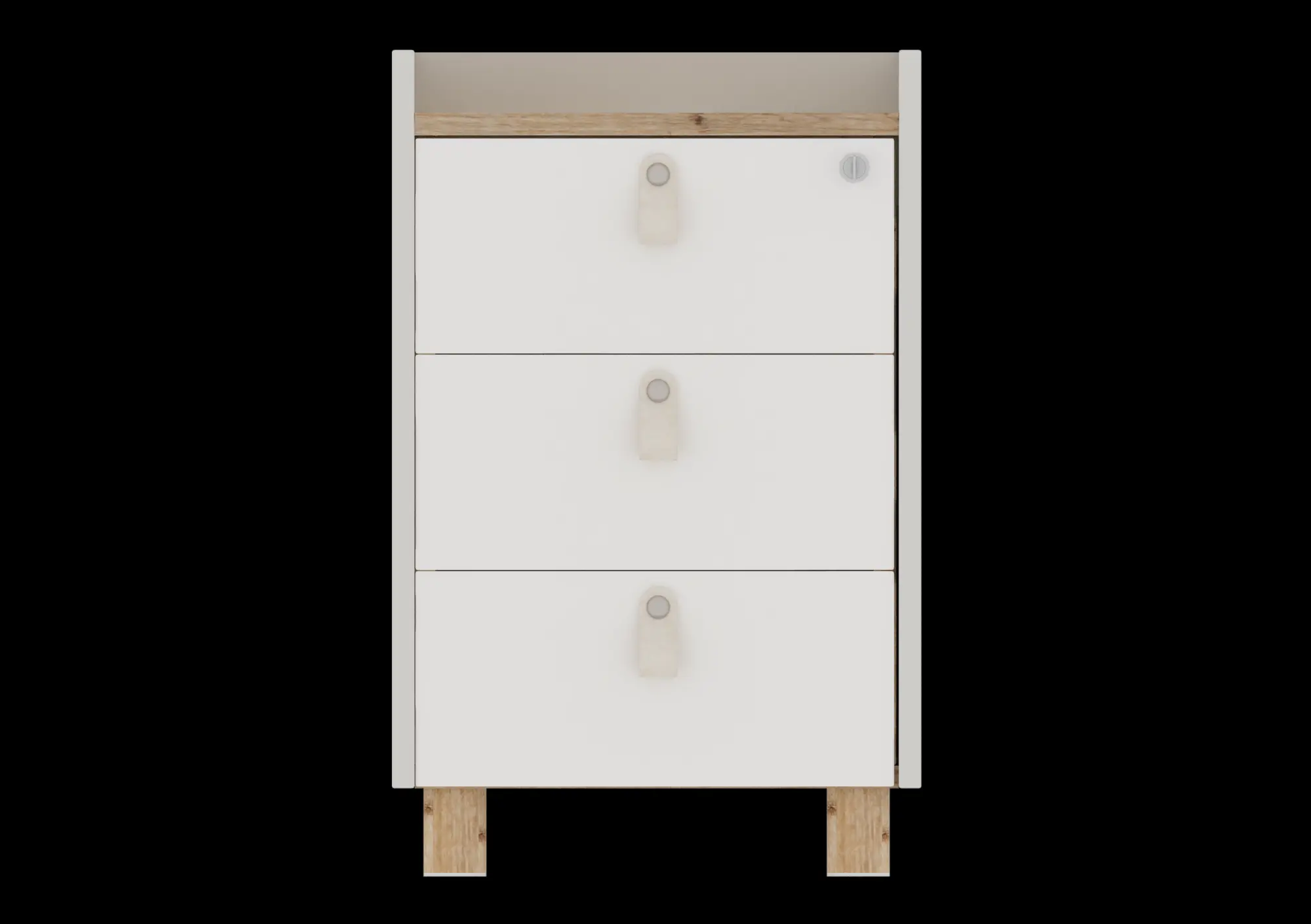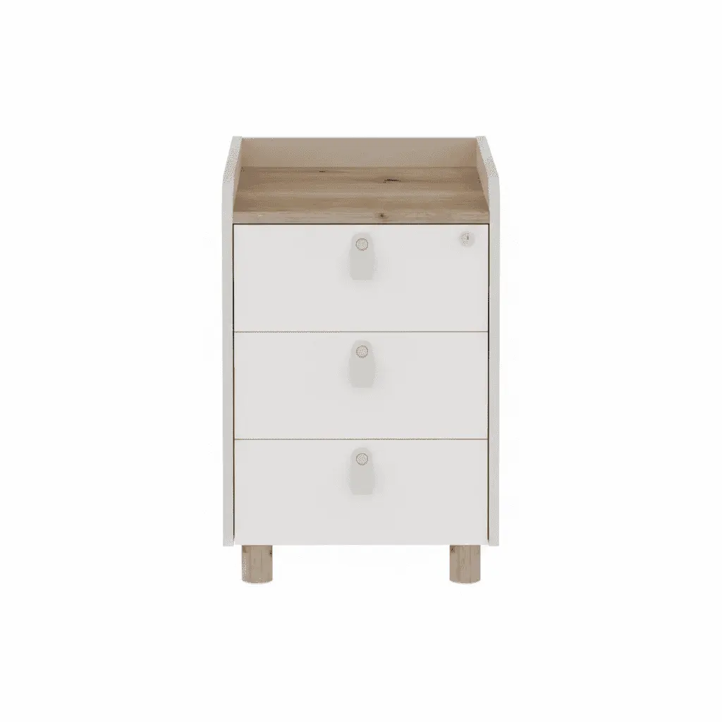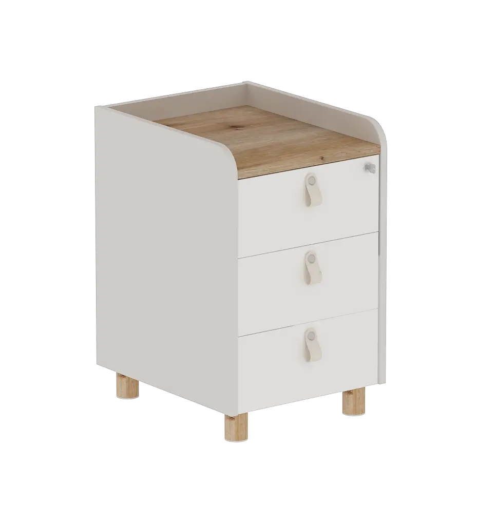 Контейнерът за офис бюро е изработен от ПДЧ материал с меламиново покритие с дебелина на плоскостта от 18 мм. Разполага с три чекмеджета със заключване и е подходящ е за съхранение на документи и лични вещи.
