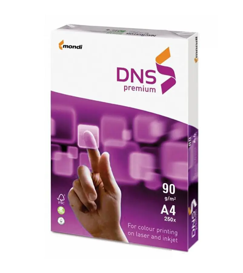Копирният картон DNS PREMIUM A4 е многофункционален премиум копирен картон, подходящ за употреба от професионални печатници и офиси. Сертификатът ISO 9706 демонстрира устойчивоста на стареене, което гарантира архивен живота на картона повече от 200 години. Превъзходна белота подходяща за текст и графики.