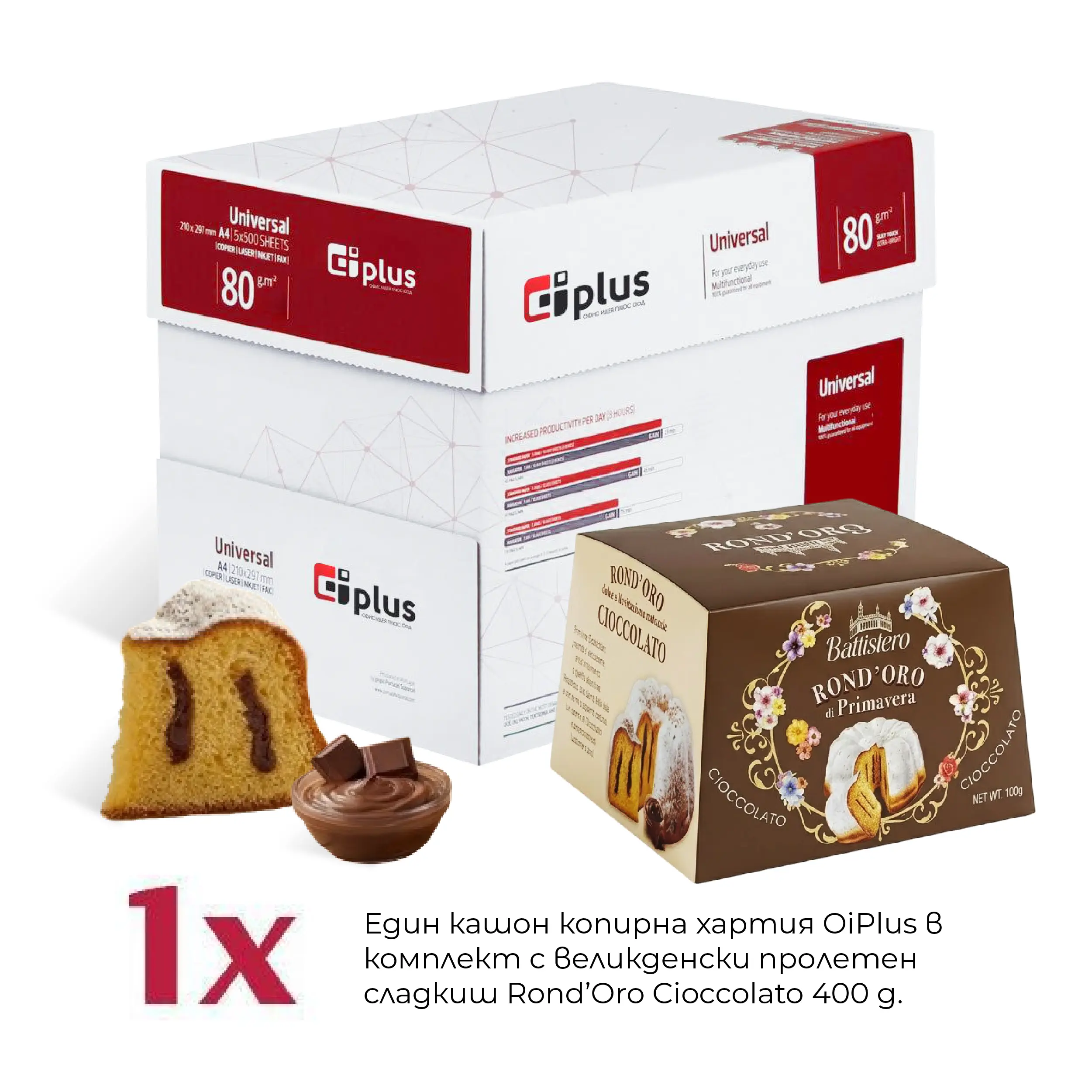 Вземи кашон копирна хартия OIP в комплект с вкусен подарък: великденски пролетен сладкиш Rond’Oro Cioccolato 400 g.