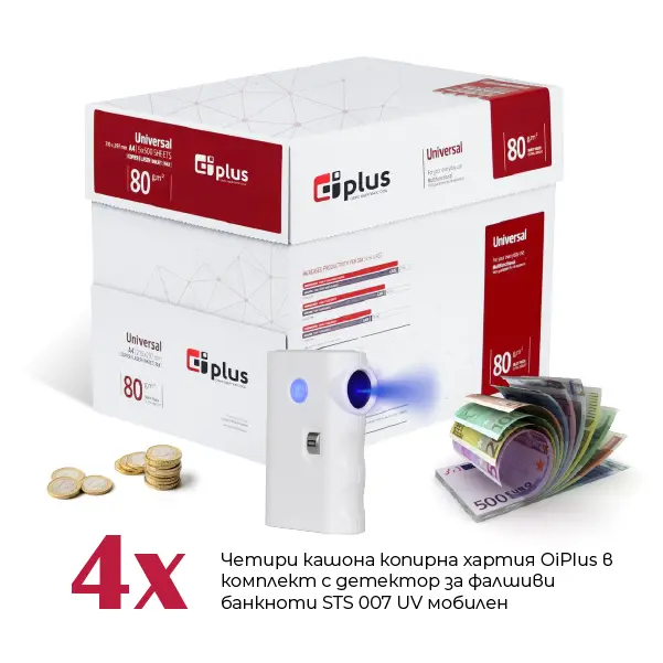 Вземете четири кашона хартия OIP в КОМПЛЕКТ с мобилен детектор за фалшиви банкноти STS 007.