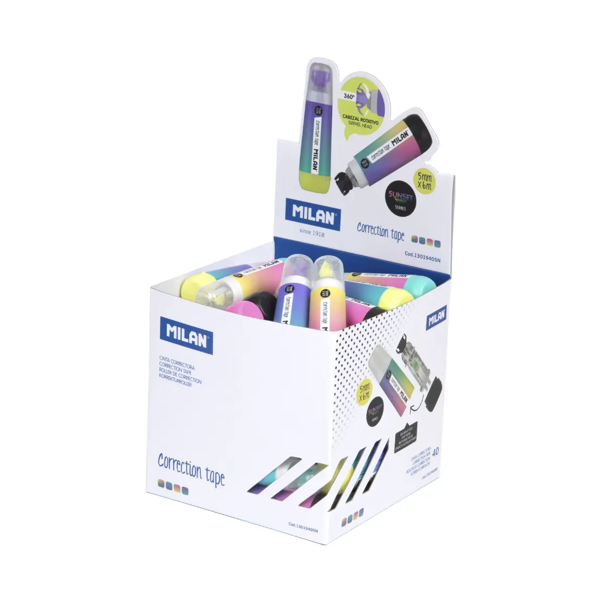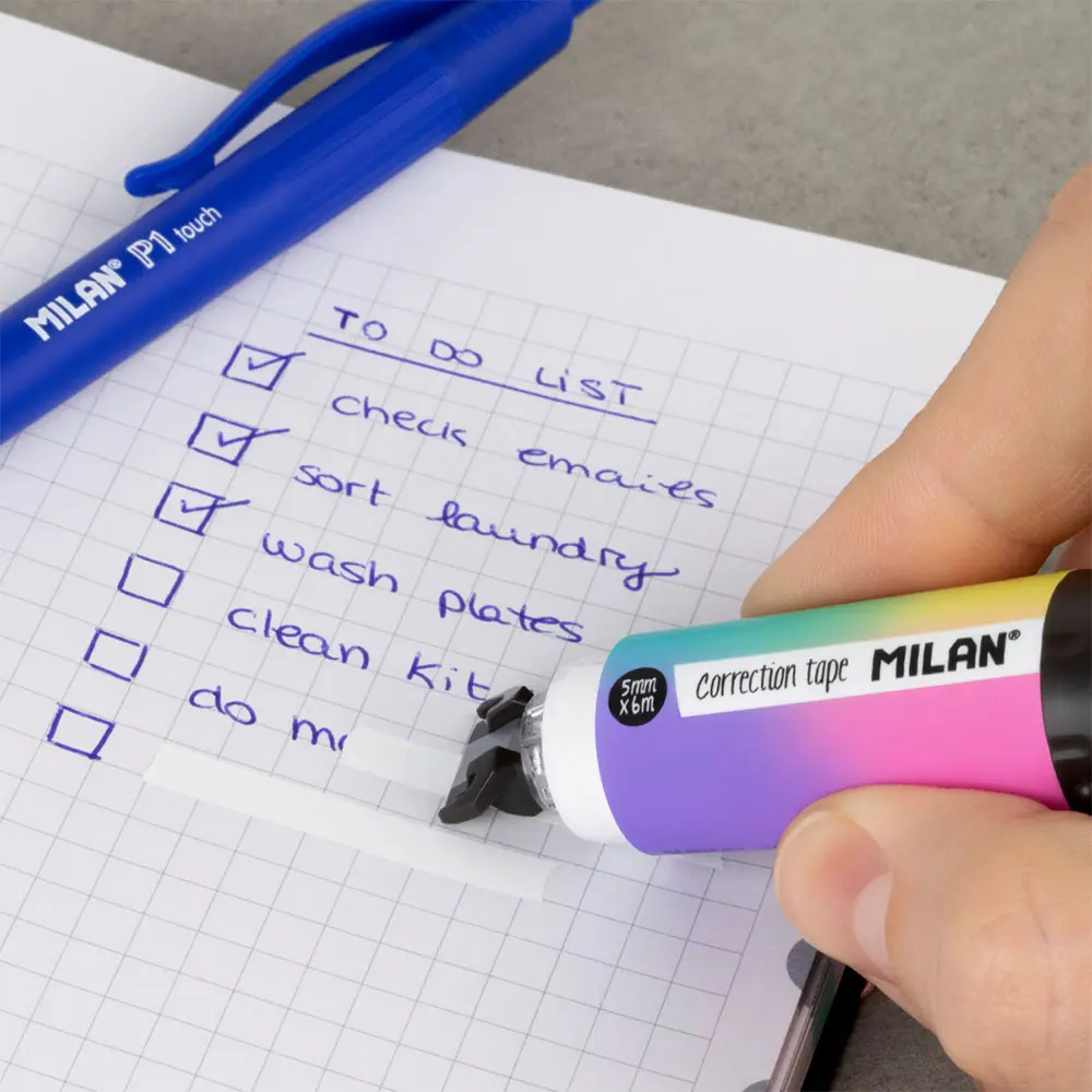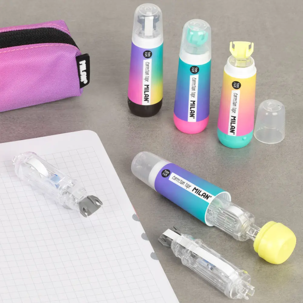 Коректор лента Milan 5 мм/ 6 м с ергономичен дизайн тип „писалка“ за удобна и прецизна употреба. Осигурява чисто покритие без следи при копиране. Лента 5 мм х 6 м, подходяща за училище и офис.