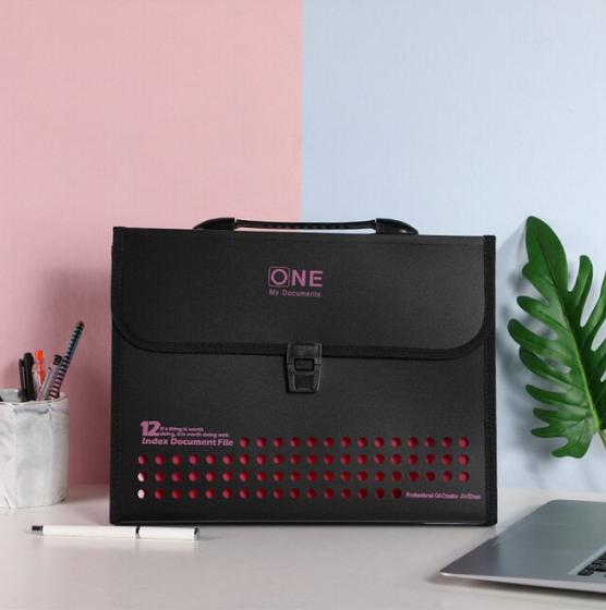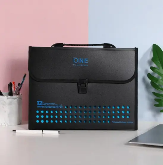 Куфарчето за документи PP 297x365 мм е удобно за пренасяне на документи. Притежава ергономична дръжка и затваряне със закопчалка.