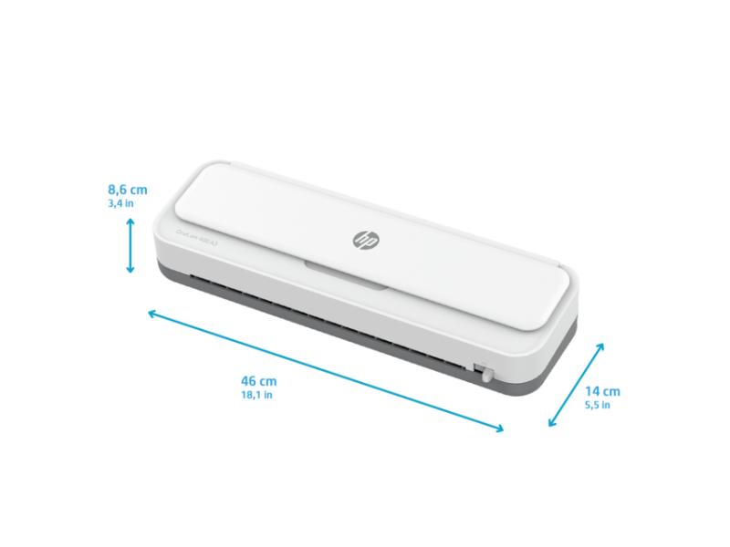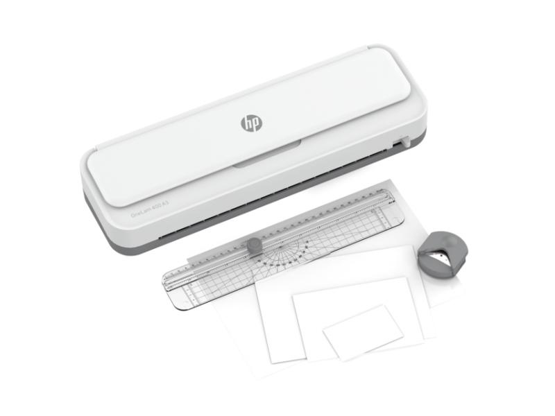 HP OneLam 400 A3 има сгъваем капак, който не само служи като практична помощ при поставяне, но и прави устройството спестяващo място. Подходящ е за топло и студено ламиниране и може да се използва с фолиа с дебелина от 75/80 до 125 микрона. Независимо дали искате да защитите рецепти, снимки или детски рисунки от износване, ламинаторът запечатва вашите документи независимо от формата, от визитни картички до DIN A3.