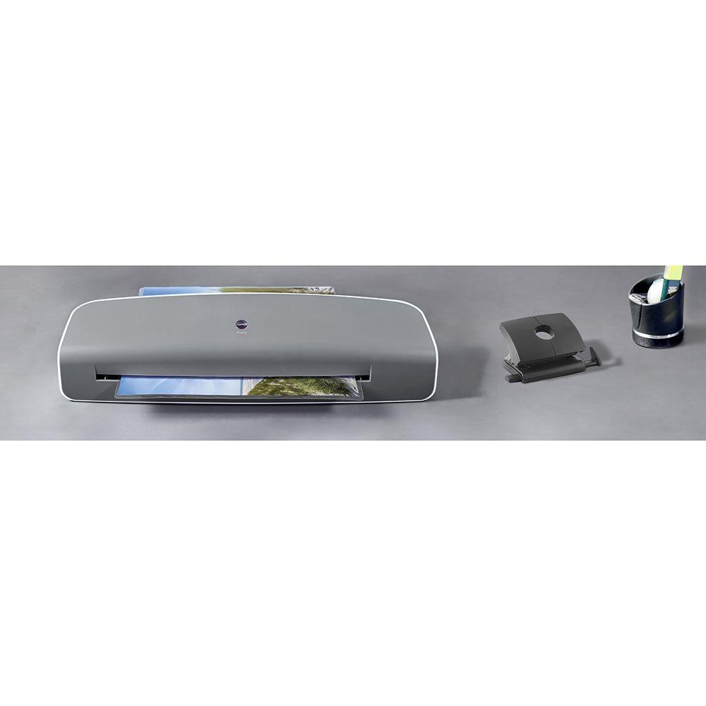Отличава се с модерен дизайн и бърза готовност за работа. Устройството позволява премахване на задръствания от ламинат. Идеален за офиси, училища, фотокопирни студиа. Ламинаторът притежава иновативната Eco-PTC технология, благодарение на която спестява до 75% от енергията, която консумират обикновените ламинатори