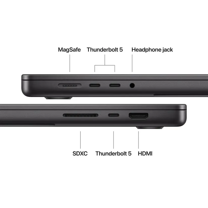 M5 чипът се присъединява към M4 Pro и M4 Max. Всеки чип предлага феноменална single- и multithreaded CPU продуктивност и по-бърза обединена памет — с което гарантира скорост, каквато не си си и представял. А с мощните Neural Accelerators в M5 чипа можеш да прелиташ през AI задачи с умопомрачителна скорост. Във всяко GPU ядро на M5 чипа е вграден мощен Neural Accelerator, който динамично ускорява различни AI задачи като генериране на изображения от дифузионни модели и процесинг на промптове в големи езикови модели (LLM). 16-ядреният Neural Engine движи Apple Intelligence, като прави AI на самото устройство мощен и енергоефективен. Стартирай тежки графични процеси със скорост, която е в крак с въображението ти. M5 е с GPU с подобрени шейдърни ядра и трето поколение проследяване на лъчи, така че геймингът е още по-завладяващ и реалистичен. А Dynamic Catching оптимизира паметта в чипа и значително утилизира GPU — за огромен скок в производителността при про приложения и игри. M5 осигурява скорост от следващо поколение и мощен AI на устройството за студенти, бизнес потребители и творци. M4 Pro осигурява повече мощ на учени, инженери, програмисти и творци, работещи по интензивни проекти. Най-авангардния ни чип, правен някога за про лаптоп. M4 Max е идеален за 3D VFX артисти, AI-програмисти и филмови композитори. Apple чиповете и всяка важна подсистема, която ги захранва, са създадени за AI и оформят платформа, която напълно обединява хардуера, софтуера и екосистемата. За да работиш по тежки AI работни процеси с невероятна енергоефективност. И винаги да си спокоен, че сигурността и поверителността са вградени, а не просто добавени. AI приложения за Mac. Родени за полет. Mac е оптимизиран за работа с авангардни AI приложения и плъгини. Например приложения за генериране на изображения като DiffusionBee, LLM приложения като Msty Studio и LM Studio и приложения за обработка на видео като Topaz Video. AI инструменти в приложенията. Mac прави магии. Трансформирай вокали с AI плъгини като MicDrop за Logic Pro. Или обработвай комплексни изображения с Generative Fill в Adobe Photoshop. Apple Intelligence помага да пишеш, да се изразяваш и да свършиш работата си без усилие. Превърни бърза бележка в изгладено съобщение. Премахни разсейващи обекти от снимките си с Clean Up. Създавай уникални изображения с нови ChatGPT стилове в Image Playground. И ползвай интелигентни действия в Shortcuts, за да създадеш автоматизации — например сравняване на аудио транскрипция на бележки, или извличане на информацията от PDF. Apple Intelligence е AI за теб и за мен. Apple Intelligence помага да пишеш, да се изразяваш и да свършиш работата си без усилие. Превърни бърза бележка в изгладено съобщение. Премахни разсейващи обекти от снимките си с Clean Up. Създавай уникални изображения с нови ChatGPT стилове в Image Playground. И ползвай интелигентни действия в Shortcuts, за да създадеш автоматизации — например сравняване на аудио транскрипция на бележки, или извличане на информацията от PDF. Така че знае личната ти информация, без да я събира. А с революционния Private Cloud Compute, Apple Intelligence може да се възползва от по-големи, сървър базирани модели задвижвани от Apple чиповете, за да обработва по-сложни заявки, като същевременно пази личните ти данни. Новият MacBook Pro е с най-дълготрайната батерия в Mac изобщо — до 24 часа — и поддържа бързо зареждане до 50 процента за едва 30 минути.46 Всички модели работят еднакво добре, независимо дали са включени в контакта или не, за да мислиш повече за проекта си, а не з