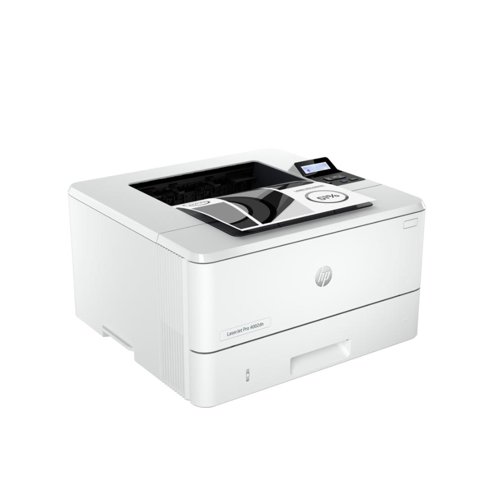 HP LaserJet Pro 4002dn е ултра качествен лазерен принтер, който е специално проектиран, така че да ви помогне да печатате по-бързо, по-лесно и по-умно от преди. Този умен принтер е създаден за употреба от до 10 потребителя и разполага с опции за динамична защита на вашите данни. Той ви помага да печатате по-ефикасно, да спестите време, хартия и разходи, благодарение на бързите си скорости на печат и автоматичния си двустранен печат. Благодарение на нулевото време за загряване, този принтер ви гарантира ултра бързо време на печат без никакво досадно чакане. Този принтер печата черно-бели документи с бързина до 40 стр./мин., а първата отпечатана страница излиза след само 6.3 секунди. Освен това този принтер ви позволява да печатате до 80,000 страници на месец (максимално натоварване).