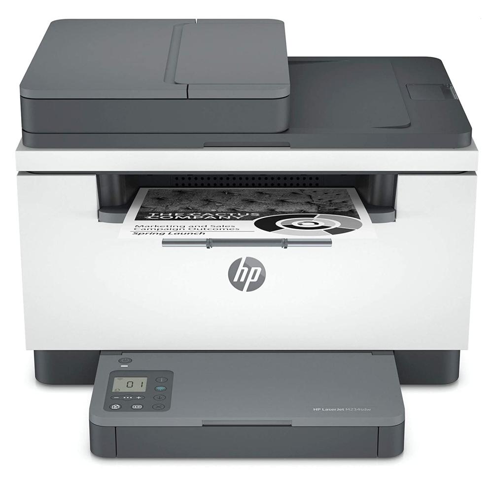 HP LaserJet MFP M234sdw е лазерно многофункционално устройство, което ви помага да печатате, сканирате и копирате с лекота и удобство. Това устройство ви помага да създавате лесни за разчитане текстове с наситени черни тонове. То ви осигурява перфектно качество на печатане и копиране и ви гарантира, че всяка ваша задача ще бъде изпълнена безупречно. Този принтер ви помага да изпълнявате големи по обем задачи, благодарение на функцията си за двустранно печатане. Той печата с голяма бързина (до 29 страници на минута), а първата отпечатана страница излиза след само 7 секунди. HP LaserJet M234sdw има изключително компактни размери, които ви гарантират, че може да го поставите във всяко офис пространство без притеснение. Този принтер ви помага да споделяте работата си безпроблемно, благодарение на лесния достъп и печат с безжична и Ethernet мрежа. Освен това този принтер ви дава възможността да печатате мобилно посредством Apple AirPrint и приложението HP Smart. В допълнение този принтер е изключително енергийно ефективен (изразходва до 20% по-малко енергия от предходния модел) и работи много тихо.