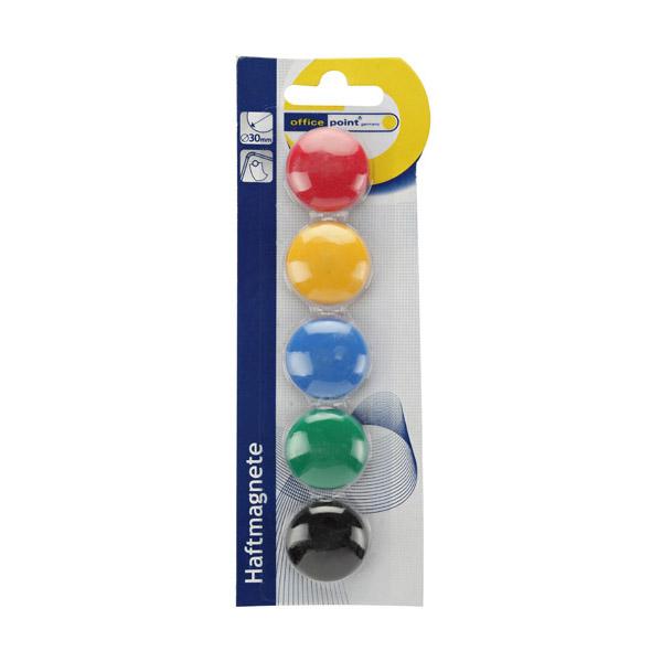 Магнитите ф 30 мм 5 броя са подходящи за закрепяне на важна информация и документи на бели магнитни дъски с всякакви размери.