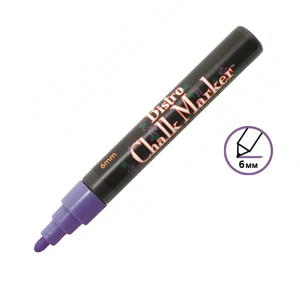 Маркер тебешир Marvy Uchida лилав за надписване и декориране на прозорци и други повърхности. Лека миризма, рисува като течен тебешир, на водна основа. Изтрива се от гладки повърхности с влажна кърпа. Не се изтрива от грапави и абсорбиращи повърхности.