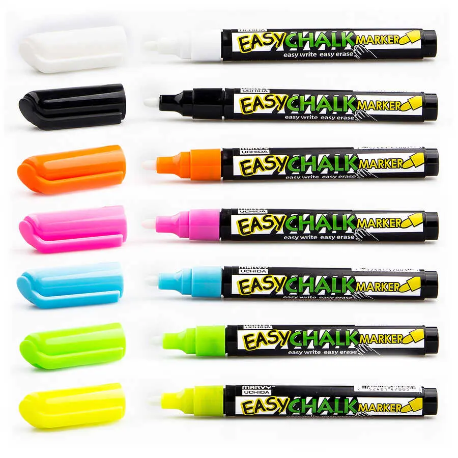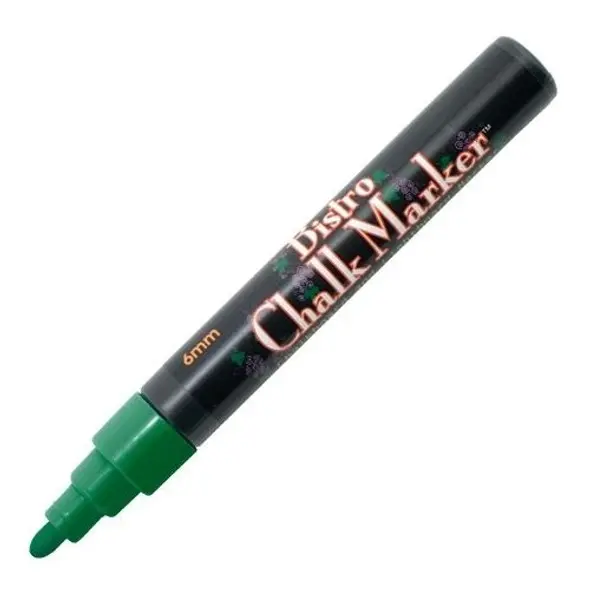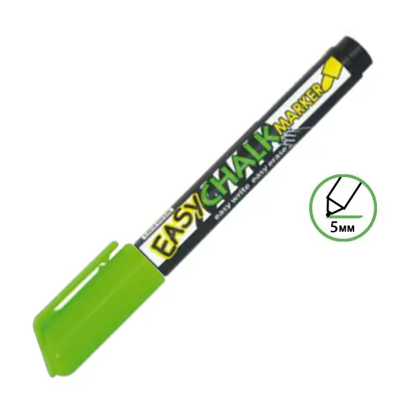 Маркер тебешир Marvy Uchida зелен за надписване и декориране на прозорци и други повърхности. Лека миризма, рисува като течен тебешир, на водна основа. Изтрива се от гладки повърхности с влажна кърпа. Не се изтрива от грапави и абсорбиращи повърхности.