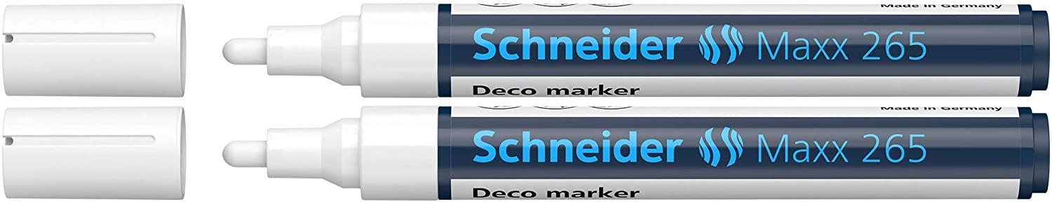 Маркерът тебешир Schneider Maxx 265 бял е подходящ за надписване и декориране на прозорци и други затворени повърхности. Изключително лесно се почиства от гладки повърхности само с помощта на влажна кърпа. В същото време не се изтрива от грапави и абсорбиращи повърхности.