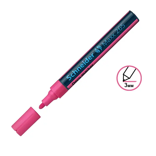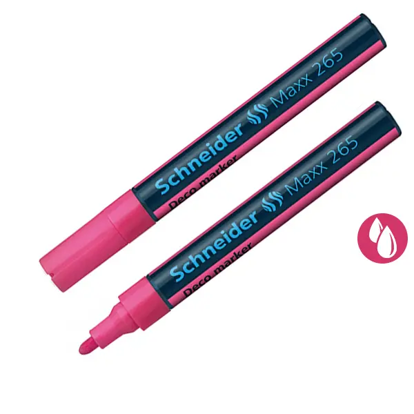 Маркерът тебешир Schneider Maxx 265 розов е подходящ за надписване и декориране на прозорци и други затворени повърхности. Изключително лесно се почиства от гладки повърхности само с помощта на влажна кърпа. В същото време не се изтрива от грапави и абсорбиращи повърхности.