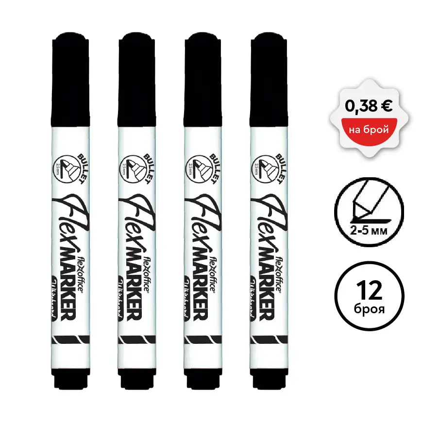 Лесен за изтриване маркер за бяла дъска, който изсъхва бързо без да оставя следи. Идеален за писане върху бели дъски, стъкло и други гладки повърхности. Мастило на алкохолна основа, което е нетоксично и напълно безопасно, отговарящо на европейски стандарти ASTM D-4236 и EN 71/3.